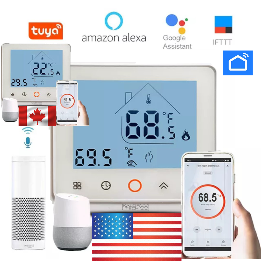 KALOR TECH Wi-Fi thermostats include everything you need to replace your old manual thermostats so you can modernize your home while saving money on energy. Tell your thermostat what to do by using the friendly app on your phone, Alexa, or Google Assistant to set the temperature for 1 or 10 rooms. Read our testimonials to see how countless customers have benefited from switching to KALOR TECH Wi-Fi thermostats.